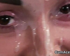 Slutty Beauty Gets Jizz Load On Her Face Swallowing All The Jism
