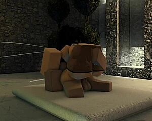 big guy in bedroom scene