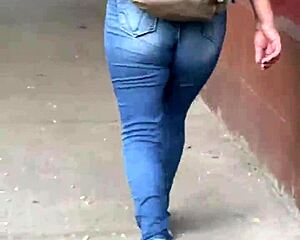 Seluar Jeans Ketat Memeluk Pantat Besar Untuk Aksi Godaan Fetish Mentah.
