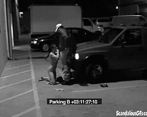 Slut girlfriend sneaks blowjob to security guard dodging office fine spying cam