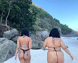old friends reunite on beach for public intimate play