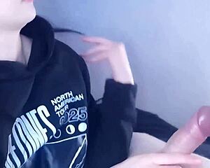 Tugjob Slut with Faketits in Fishnets Gets Facial Cum in Mouth Shower
