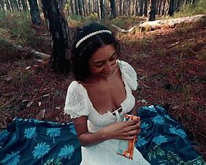 innocent forest walk turns into curvy latina deepthroat gagging on huge black cock rough outdoor