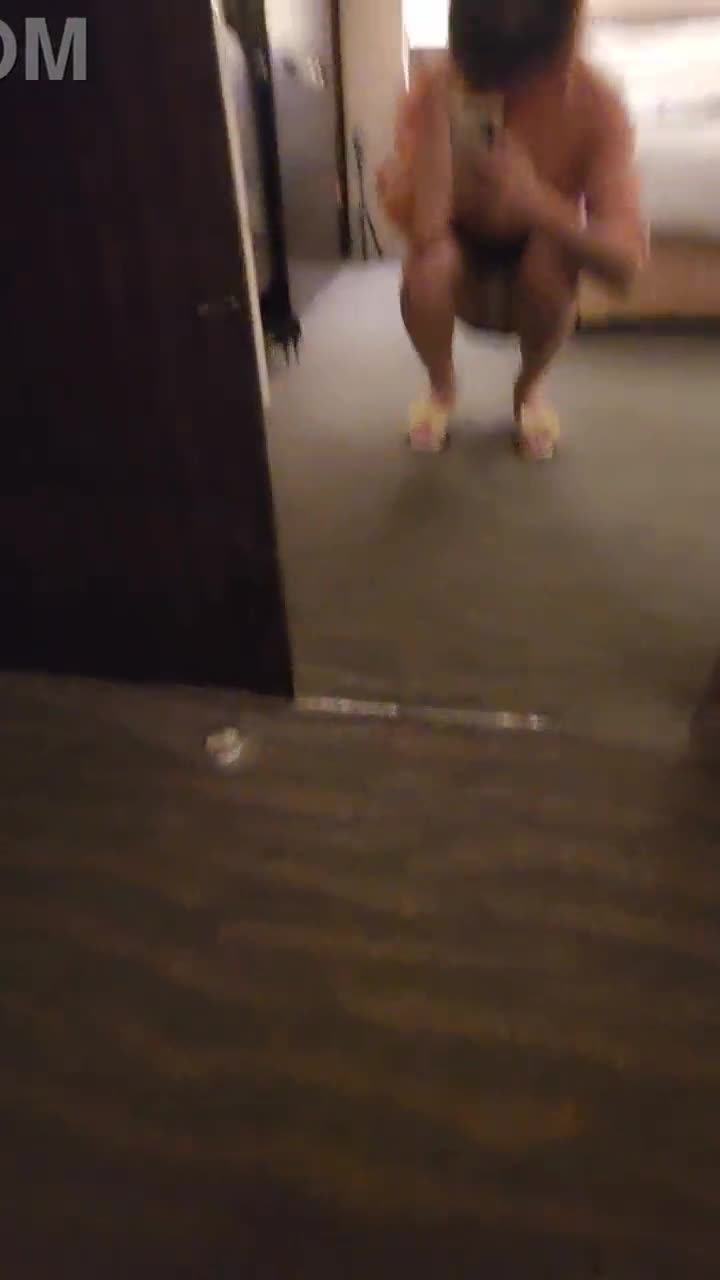curvy tranny in heels strokes herself outdoors