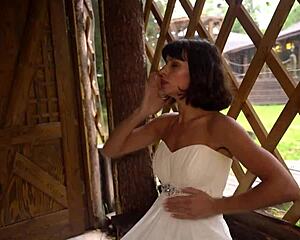 hot bride sneaks off post-altar to ride cock doggystyle in stockings